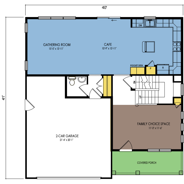 A part of our Dream Series, the Buckthorn 2-story floor plan features 3 bedrooms, 2.5 bathrooms, and a 2 car garage, with a footprint of 40x41 feet and 2042 total square feet of living space. Floor Plan #DR273