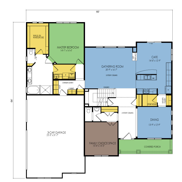 A part of our Designer Series, the Hazeltine floor plan features 4 bedrooms and 3.5 bathrooms with a foot print of 60x64 feet and 3133 total square feet of living space. Floor Plan #DN382