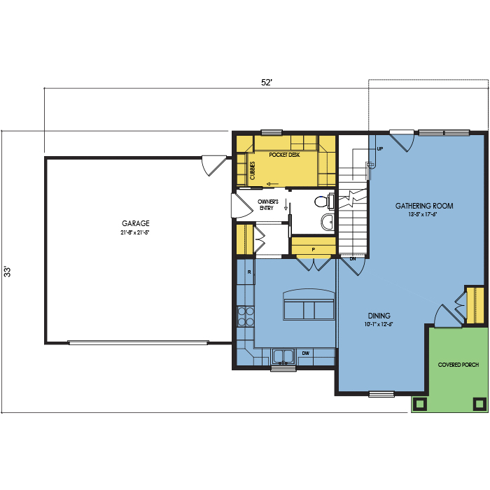A part of our Dream Series, the Mulberry floor plan features 3 bedrooms and 2.5 bathrooms, 2 stories, a 2 car garage, a footprint of 52x31 feet, and 1663 total square feet of living space. Floor Plan #DR253