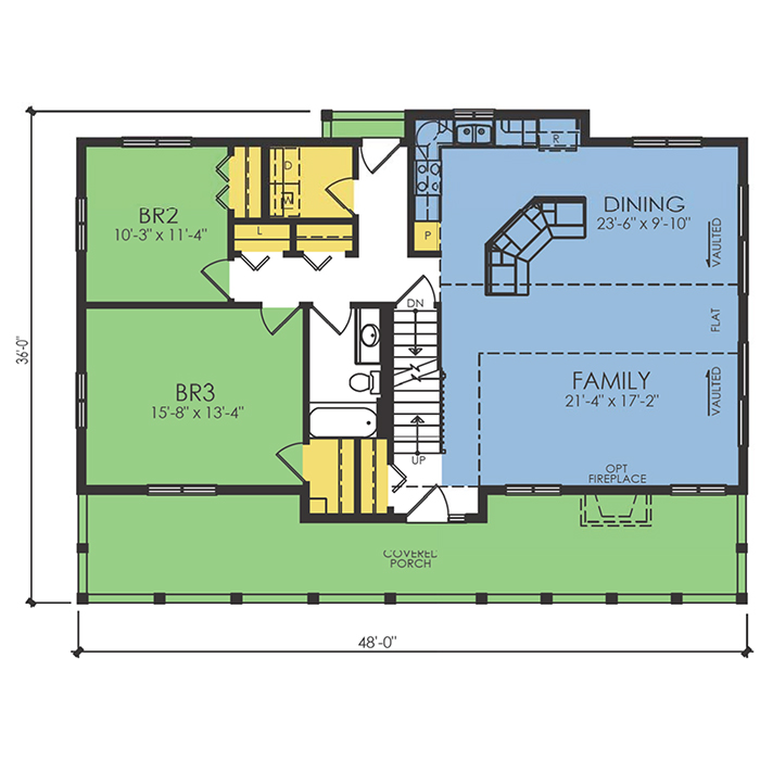 A part of our Wausau Originals, the St Croix II floor plan features 3 bedrooms and 2 bathrooms with a foot print of 48x36 feet and 1811 total square feet of living space. Floor Plan #WO668